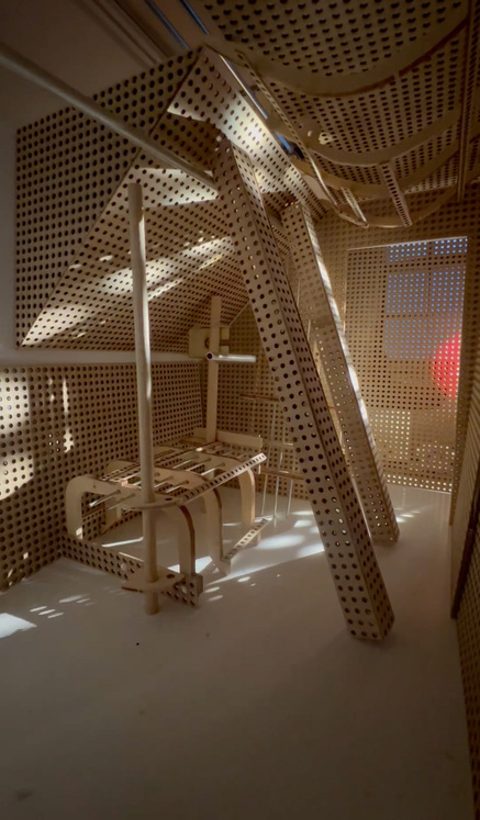 New installation coming to Rauma Marimime Museum. Plywood electric motor, led-light